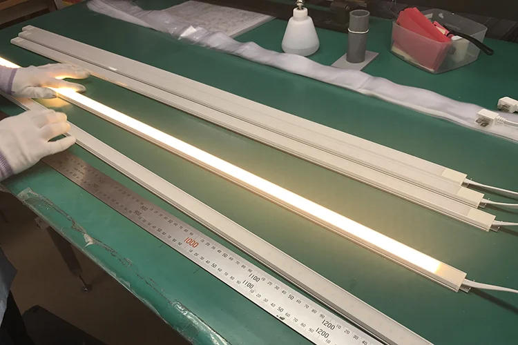 コンビニやドラッグストアなどで販売されている商品をきれいに見せるための間接照明を作り、点灯確認を行います。