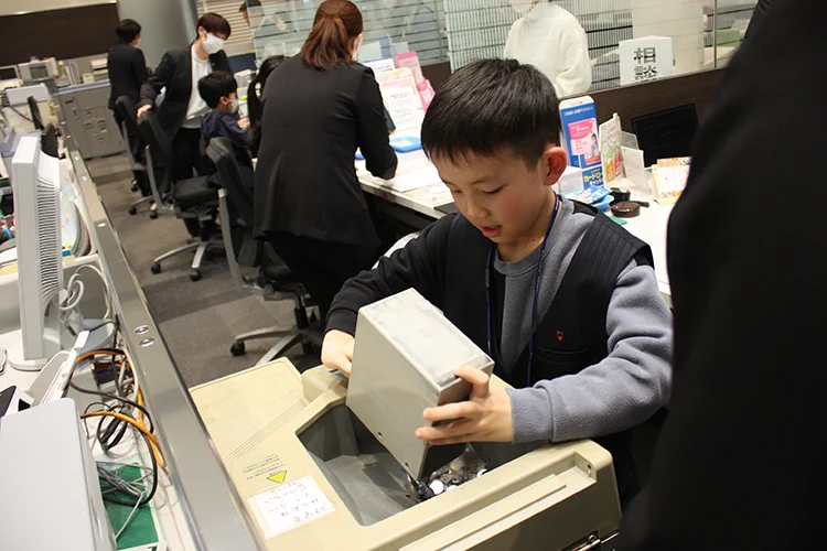 - 模擬紙幣を使ってお札を数える「札勘」を行います。